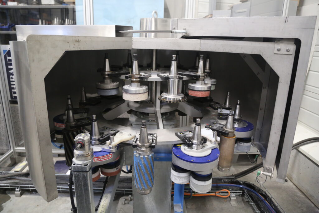 | Rotierendes Werkzeugmagazin mit 25 Plätzen | Portal zum Einspannen |