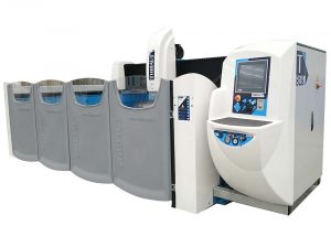 Die große Dimension des Arbeitstisches, mit der Möglichkeit 2 Reihen von Magazinen und somit 90 Werkzeuge anzubringen, machen aus der T818 M5 ein leistungsfähiges Produktionszentrum.