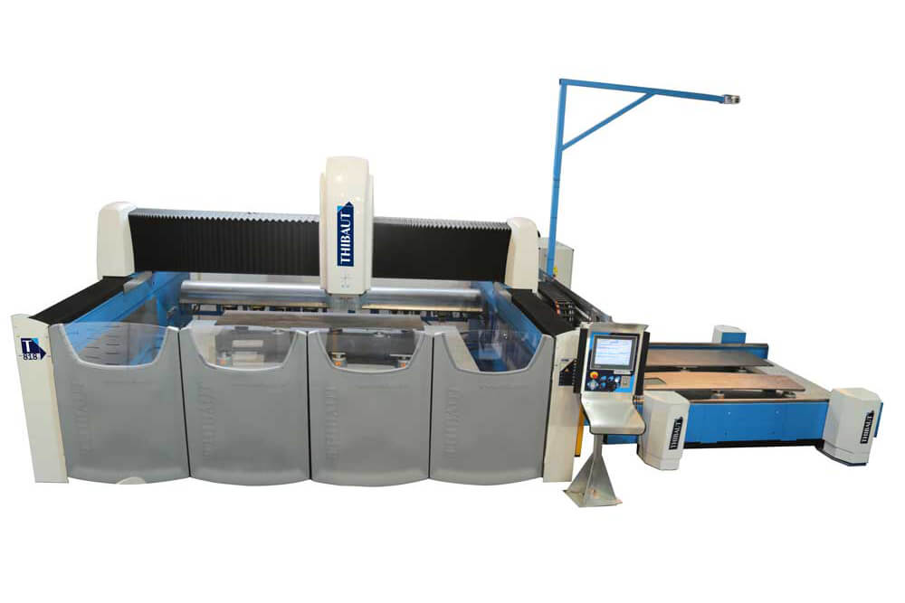 its transfer system increases the productivity, enabling a work in dead-times. The operator positions the slabs on the loading/ unloading table (laid on the right or left) while the machine is machining on the other table.